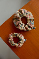 Chouchou en coton - Fleuri rose et bleu