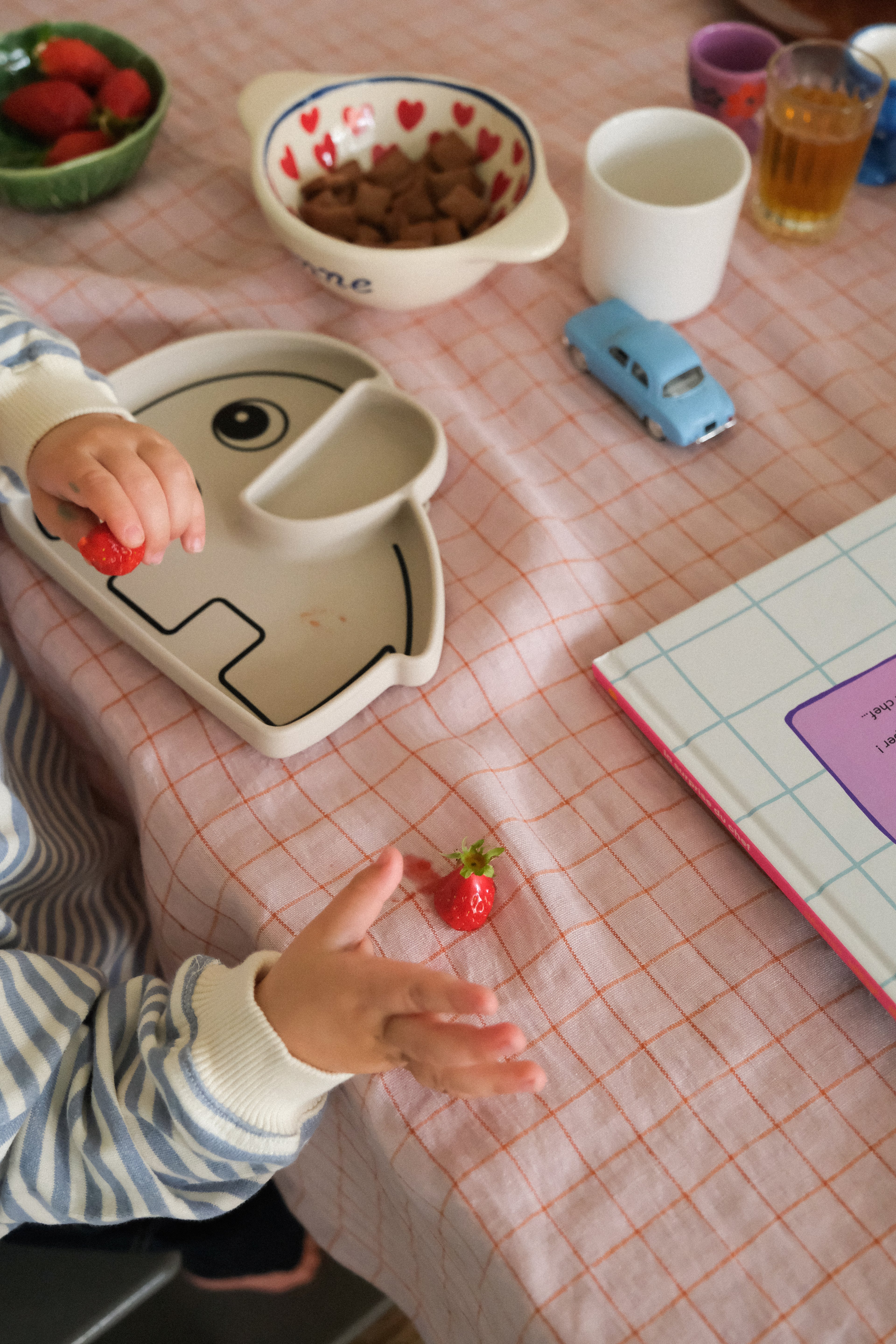 Nappe en lin 260 x 140 cm - Carreaux rose